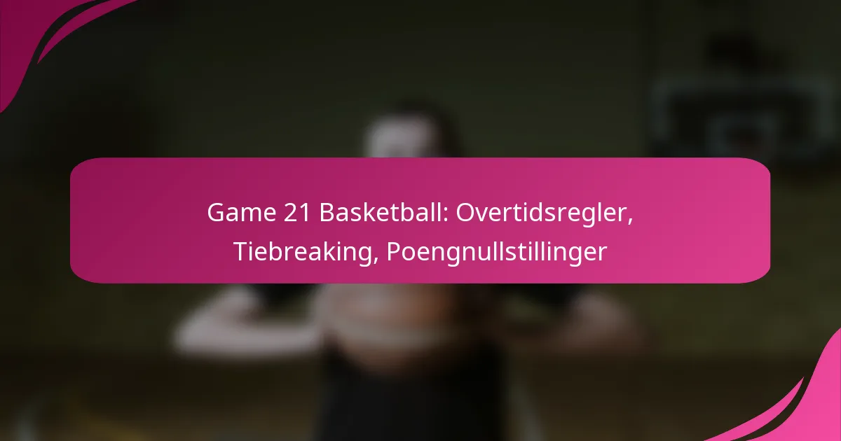 I Game 21 basketball aktiveres overtidsreglene når lagene avslutter reguleringstiden med uavgjort poengsum, noe som fører til en bestemt periode for å løse uavgjort. Prosedyrer for å bryte uavgjort er etablert for å avgjøre vinneren på en rettferdig måte, mens poengresetting kan forekomme under visse forhold, noe som krever at lagene må starte på nytt og endrer spillets dynamikk betydelig.