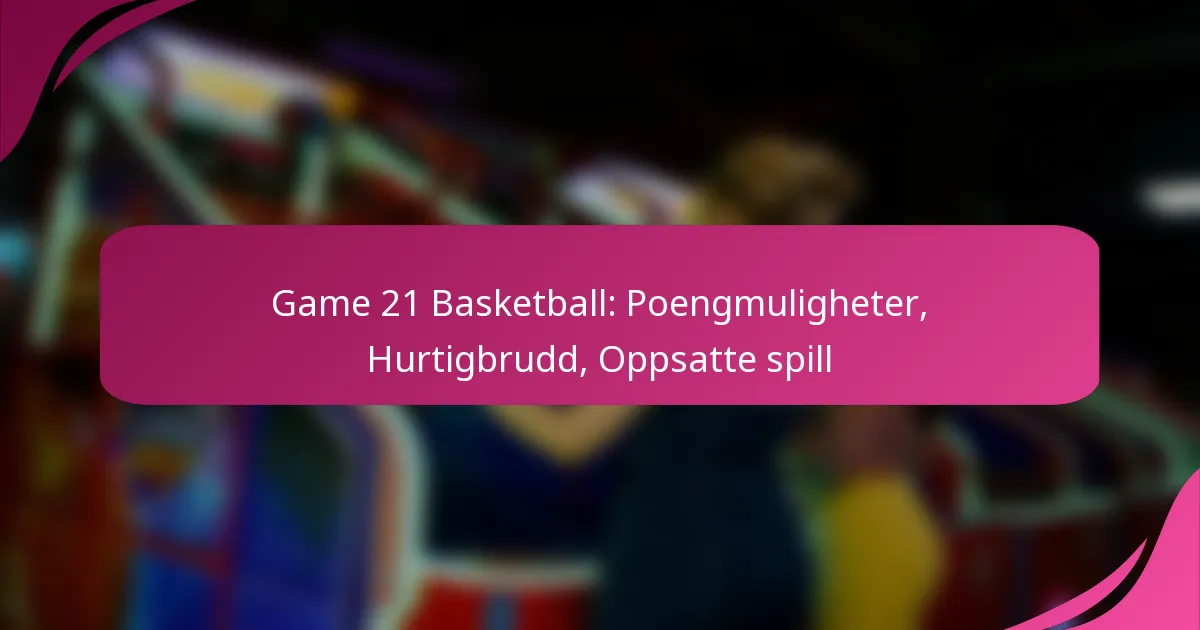 I Game 21 basketball kan spillere forbedre sitt scoringspotensial gjennom en kombinasjon av raske brudd og oppsatte spill. Raske brudd utnytter fart og samarbeid for å utnytte defensive svakheter, mens oppsatte spill bruker strukturerte strategier for å skape optimale scoringsmuligheter. Å forstå disse elementene er avgjørende for å maksimere effektiviteten på banen.